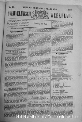 Opgemeld in het Overveluwsch Weekblad Zaterdag 22 juli 1882 (Acht en dertigste jaargang)